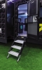 The SolidStep design permits the step to stow inside of the entry door, keeping road debris and corrosion away while simultaneously permitting continuous skirt metal on the RV, enhancing the aesthetics of the coach. Recessed feet prevent trip hazard and maximize clearance for camping spot Mounting screws provided for either wood or laminate floor applications No bounce, manual steel step with aluminum treads Kickplate prevents damage to sidewall and skirt Extra-wide top step for easy entry and exit Optional illuminated LED tread lighting 400-pound capacity